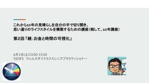 うさぼうです。 セミナーを開催しました。 第1回は3/16(土)に、シゴタノ!の大橋悦夫さんと佐々木正悟さんが主宰するオウンスタイルワークショップの場で登壇させていただきました。 https://cyblog.jp/36177 今回はその続きです。 10年講座とは何か 10年講…